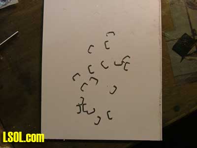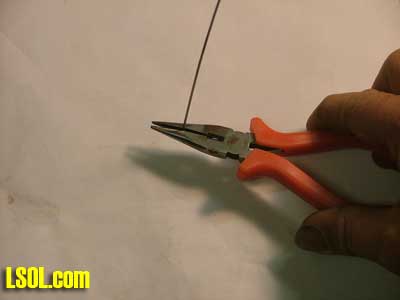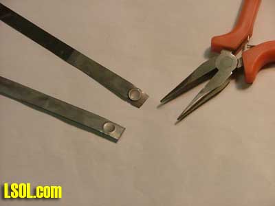 Then I took a pair of needle nose pliers, the type that doesn't have teeth, and flattened the ripples out of the edges of the steel. After that I bent them and cut them to length.