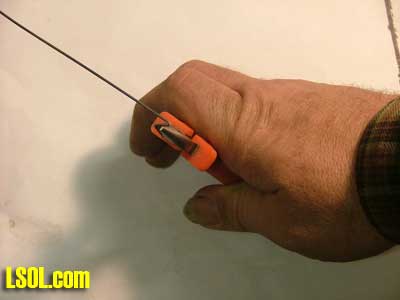 Then holding the grab iron in the same set of teeth in the pliers I cut the wire with my diagonal cutters, as close to the pliers as possible. Simple and quick grab irons.