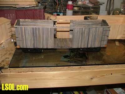 It was suggested to me to just glue the siding on and let it come out as it will. But I have seen several old wooden buildings that had shifted and twisted and the siding always stays pretty much in line, and I wanted that look on my cars.