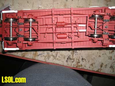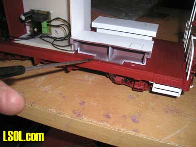 When I returned from the show I inspected it and it was equipped with lighting. So my thought was I was going to run the caboose with my K-27 that has a RCS system. So I needed to remove the cabfrom the floor and I thought it was going to be an easy task. I turned the caboose over and saw 4 screws to remove the cab from the floor. Piece of cake.