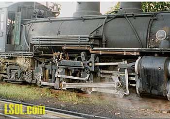 Soot, water, rust, coal, road (right-of-way) grime, lubricating oils, sun, internal heat of the boiler and tender all work together to different degrees to age a locomotive. Soot and dirt kicked up by the running gear, draft, and wheels are the most apparent. Soot weathers back and down the locomotive. Pictures will show soot-covered smoke-boxes that appear as black as the boiler, yet the front of the smoke-box/boiler face is still clean/silvery. Dirt is kicked up and carried with the draft of the moving locomotive and is most prevalent on the running gear and the tender's lower edge. Dirt kicked up on any moving object forms patterns or waves. The rear axles of a locomotive get dirtier than the front due to this draft/wave motion. Dirt will form on the front edge of a tender, taper off some over the front truck, thicken up in the center, taper off again over the rear truck and thicken up again on the rear edge of the tender. Rust is formed in areas where there is standing water or repeated condensation. Rust will form around the tender deck lip, water hatch where it is bolted onto the tender but not necessary on the lid itself. Rust will also form on locomotive boiler washout plugs after a few months of service. Rust can also be found on boiler sheets seams under the steam turret where water collects, on the counter weight under the air pump and on the firebox in and around the cock valves, and on the tender leaf springs. Rust can be found on tender sides depending on the age or if bolts have started to rust. K-37's #492 and #497 had significant rusting on their tenders in their later years. Grease can be slung out onto counter weights from the axle and rods where they are attached to the counterweights. This is an often overlooked detail. Getting a good foundation is as important as the air brush and paints you use. Research the item you are interested in. If you are going to weather modern rolling stock take pictures of some local trains. Take callouses of different parts of the engine or car and see how time has taken its toll.