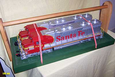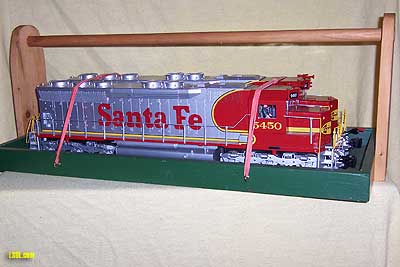 Carrying engines and rolling stock to be used on a layout set up for a special occasion such as a flower show, train show or when visiting a friend's garden layout, usually presents itself as a challenge. So how do you do it without dropping the engine or one of your favorite passenger or freight cars? There are as many ways to carry engines and rolling stock as there are Large Scale operators or garden railroaders. Each person seems to have their favorite way to get those pieces of rolling stock from their vehicle to the tracks without dropping small parts or worse yet, the entire engine or car on the way. When I was carrying my engine and rolling stock to a layout recently  I was asked about the train trays I was using...where I got them, how much they cost, etc. My answer was that I had assembled them from mostly recycled wood and materials I had around the workshop and house. I needed a tray that would accommodate my 2 SD45 Santa Fe War bonnets  so they were used for measuring purposes to design the larger of the two trays described in this article.