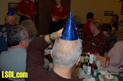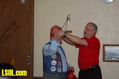 Last year it was noted that many of the members were missing most of their hair and that caused some problems with reflection of the flash for picture taking, so this year many of the members wore hats to alleviate the problem and J.D. passed out special hats to those who needed them but were not wearing them.