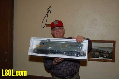 As Jo Anne and I took pictures the drawing was held for prizes. The first prize was the first of the ECLSTS show locomotives and the second prize was one of the Eaglewings metal buildings. Several of the LSOL.com small trucks and a couple figures on motorcycles were then given away.