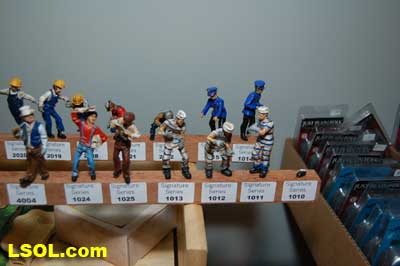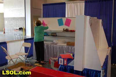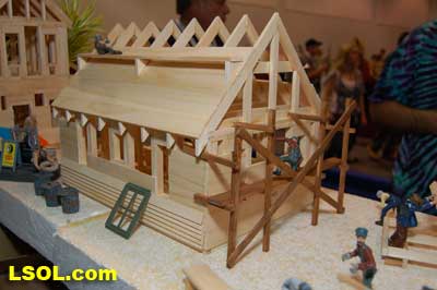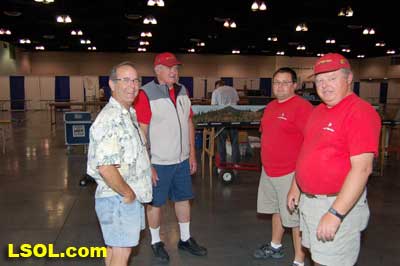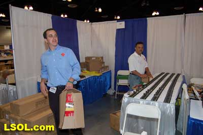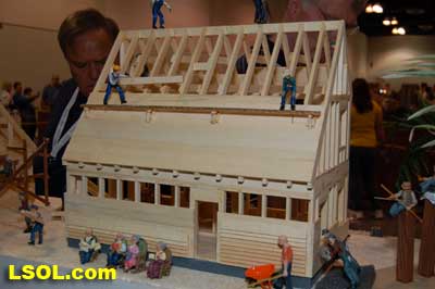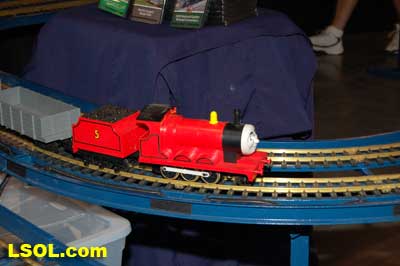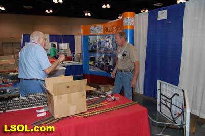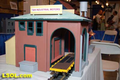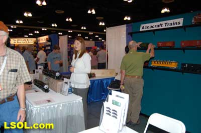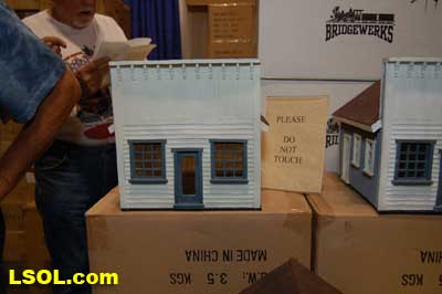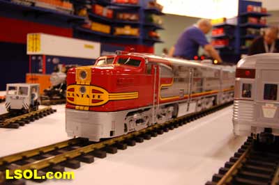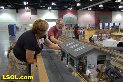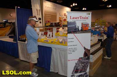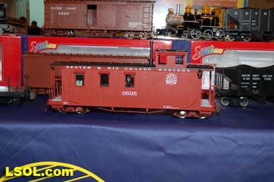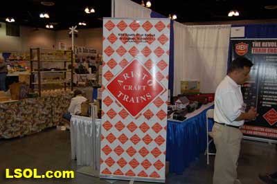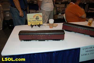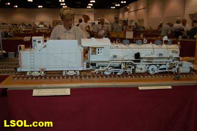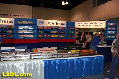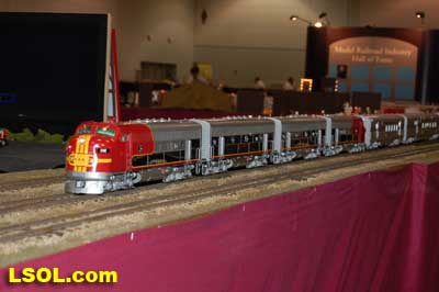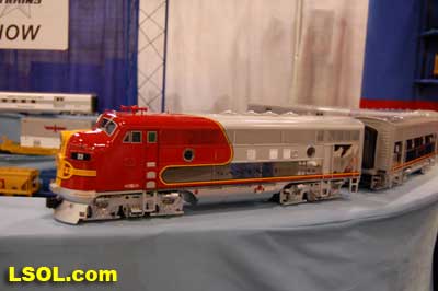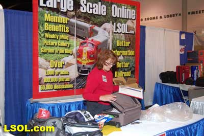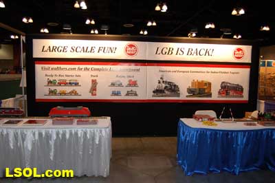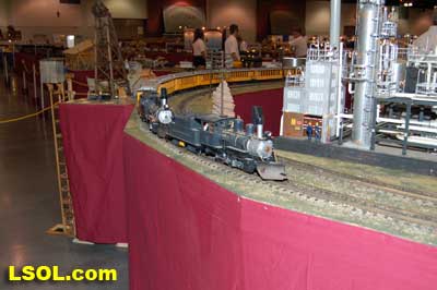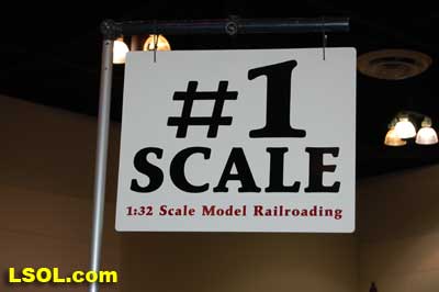 Another Big Train Show (BTS) has come to an end here in Ontario, California and it was a great show. For the first time this year the show has included all scales and there were some concerns that it could hurt the show for Large Scalers. It turns out that it may have even helped the show. The convention center in Ontario provides an excellent place for the show. It is near Los Angles but far enough away so that the traffic is not bad. The weather was cool for June, but it didn't keep the crowds away. The convention hotel was the Ontario Marriott and it provided nice rooms, excellent employee service and a very convenient location. The breakfasts were great and the service was friendly and efficient. It was a great place to stay again this year. There were vendors for all scales and it was fun to see model railroaders in all scales setting up their railroads to share with all of us. The difference in size between the scales was very apparent to all who attended, but was shown very vividly by a display on one of the N scale railroads. There was a lot of speculation among us Large Scalers about how many N or Z scale boxcars would fit in a G scale boxcar. The Z scale railroaders were an interesting bunch and were having a great time. There were 74 vendors at the show and they included 39 that were exclusively G scale. There were 12 that offered other scale products, 11 offering products in multiple scales and 12 offering things that were railroad related such as rides on real railroads, fabrics, tools and even real railroad devices. On Thursday, when we arrived the hall was pretty empty with a lot of people working hard on setting up the modular railroads. Some of the vendors were arriving and beginning to bring in all of the goodies that we love to look at and buy. It was fun to see and talk with several of our old friends that we only see at Large Scale shows. Friday morning arrived early for those of us who had traveled from the east coast the day before. Jet lag is real, but results in being able to start early on the west coast. After a big breakfast, Jon, Jo Anne, Bryan and I packed all of our stuff over to the convention center and set up the Large Scale On Line booth. We found that a lot had been done in the late hours of Thursday and many of the vendors were set up. The modular railroad people were still working hard to fine tune their railroads for the show. As the day progressed we began to hear the sounds of these railroads and that added to the anticipation for the show to begin. By the end of the day we had visited with all of our friends, watched the vendors set up their offerings and built our anticipation for the excitement of the show. We were joined by "Video" Peter during the day and he began to record the show for us with his "moving pictures'. We were up early again on Saturday morning and arrived at our booth about 8:00 for a 10:00 show opening. Most of the major vendors were at the show, with only MTH missing. Although there were not many new items introduced at the show, there were still a few things for us to covet that were new or at least, were not yet in production. Eaglewings had several new buildings on display and they are excellent models for outdoor railroads. John at Upland Trains introduced a new building model of a store selling for $40 that appeared to be an excellent model for the money. A kit-bashed version was also on display showing what could be done with a little work. We will be doing a product review on this building in the coming weeks. Pacific Coast Garden Railway Supply has added a model of the D&RGW Durango 65 foot Armstrong Turntable to their excellent collection of high quality narrow gauge structures. It includes a metal support, bearing and basic bridge with styrene side structure and is a beautiful model of the turntable. Train-LI-USA had some interesting new figures and was also advertising a Laser uncoupler controller in their very colorful booth. Bachmann had their new narrow gauge long caboose on display and it was a beautiful model. It has a fully detailed interior that faithfully reproduces the crew living quarters with working gas lamps for interior illumination. They also had their new release of the Thomas and Percy train sets in G scale running in their large booth. USA Trains had their very large booth in place and were showing some new paint and road names for some of their top-selling products. There had silver plated versions of the ATSF F-3's and PA's. They also had new roadnames for their Alco S-4's. Aristo Craft had prototype versions on display of their PCC, Consolidation and a new gas station. Lewis Polk showed us the new coupler they are developing that is more prototypical scale and will join with all other knuckle couplers. Scott, Navin and Lewis were in the booth next to the LSOL.com booth this year so we were able to visit with them throughout the show. John at Just Plain Folks has been introducing a series of figures in 1/22.5 that are being sold by him in his booth and also offered by Silvergate. These figures are high quality productions and represent people from the early 1900's to present. At the show he had several new people for our railroads. These included working people, street scene people and even a set of cops and prisoners. He also has three houses of different sizes under construction that are made from pine. Some of his figures are made to be working on these unfinished houses. Jon was also showing the first one of a 1930's gas station half flat that will make a nice addition for a railroad. A new item that was not for sale, but was extremely interesting was an F scale (1/20.3) Denver & Salt Lake standard gauge 2-6-6-0 locomotive built to run on hand laid track that represents the correct standard gauge in 1/20.3. Built by George Konrad over a three-year period it is currently not painted and weathered but George promises to do that over the next few months. There are currently no commercially ava