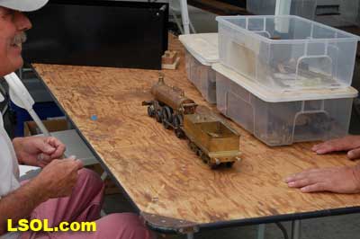 | I'm from Las Vegas so I ran down to Ontario Saturday morning (0-dark 30) and got there just before opening. I meet some of my fellow LVGRS members, chatted, watched some Live Steam then headed inside. WOW!!! I was like a little kid in a candy store. I walked around with my head snapping from side to side for about an hour. When I decided to stop wandering, I focused on the things I had seen which most interested me. The most impressive thing to me was the helpful attitude of the vendors. Kudos to Randy from Pacific Coast Garden Railway Supply and Rick from Empire Builder Railroad Design for all their time and attention to my myriad of questions. I picked up some great buys from Bridge Masters. Around 5PM my knees told me it was time to leave. I already have next year?s show in my calendar. If you didn?t make this year?s show I recommend you try and make the trip next year. |