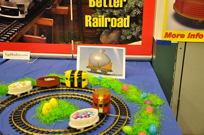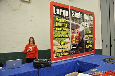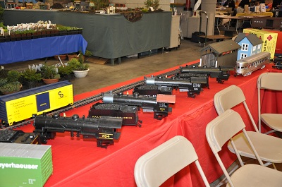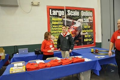 Upon entering the hall, visitors were greeted with the first of many modular railroads. The Susquehanna Garden Railway Society provided their floor layout just inside the entrance to the show. The ECLSTS cars and shirts were located just inside the entrance.