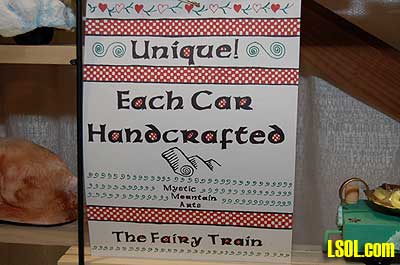 Ray's final thought in the interview was that he feels that the Fairy Trains are a great way to get women and children interested in the hobby and the trains allow them to be involved in this hobby in a way that no other products provide. He made the observation that his booth at this show is right across the isle from the Ride On Trains booth. He says that as the men walk up to that booth and begin to spend a considerable amount of time looking at those trains, the women notice the Mystic Mountain Arts booth and come over a spend the same amount of time looking at the Fairy Trains. Mystic Mountain Arts 10251 Kenny Lane San Jose, California 95127 (408) 929-3097 Website: www.mysticmountainarts.com Top of Page