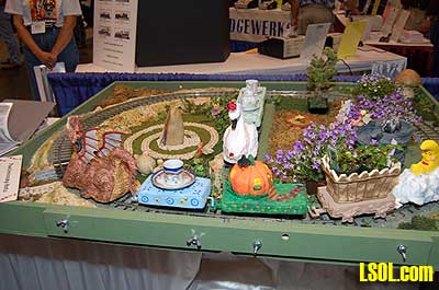 This is the second in a series of nine articles that will give you an in-depth look at some of the interesting vendors who were at the 22nd Annual National Garden Railway Convention in Santa Clara, California this year. We selected some of the smaller vendors who had interesting products to feature in this series. Each vendor was selected because they had products that are very professionally done and are somewhat unique. There were many vendors at the show and almost all offered products that were worth spending your money to add to your collection. It was difficult to limit ourselves to only these nine, but we thought you would find what they had for sale to be something of special value or uniqueness. This is a review of Mystic Mountain Arts, owned by Ray and Ellen Turner. They have been in this business for just over a year. He was looking for something to do after he had retired last year and decide to start this company. His interest is in railroading and model railroading and his wife's interest is in various kinds of art. She was already involved in a limited way in the hobby with her interest in creating artistic things.