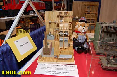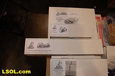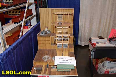 When asked what he would be introducing next, Bill said he tries to get input from people who are friends and customers. He says that doesn?t always work since many of the people who are most vocal only want things that they want and those things are often not what other people want. He looks for prototype models that exist and then does the research to develop the model. It is hard to develop a model from pictures and words. Having the real thing insures that the model is accurate. To find out about the things he models he does much of his research on e-Bay and says he became quite an e-Bay junkie until he decided he was spending too much money on his habit. The habit did result in his having a large number of catalogs and pictures of the machinery he loves. He says that these help, but there is always a backside not shown on the pictures. That is why it is better to have the real machine so that he can take his own pictures and measure everything before he begins to develop a new model. The Large Scale gold mill will be finished and available near the end of the year. He plans to begin to offer some more of the logging equipment in Large Scale and beyond that he isn?t sure what will be next. Bill is the only person in the company, although his brother, Carl, helps occasionally. He has attended the Queen Mary show a couple of times in the past and this is his first time at the National Convention. He says that it is nice to be at the show so that people can actually see the products, but because he is very specialized, he doesn?t sell much at shows. Most of the sales come from direct orders and the website. His real market is the narrow gauge scratch builder who is willing and able to invest the time to build and detail his kits or use his products to build their own models. He does go to the annual narrow gauge convention, since that is where most of his buyers attend. All of his products come as kits that require assembly, painting and weathering. Bill brought only a few of his kits to the show. He offers craftsman kits with structures and complete interior detail. These kits include: a blacksmith shop, gold mill, power station, mine inclined shaft head frame and hoist house and a 10-stamp gold mill. He also offers machinery, equipment and detail parts such as: the machine shop, sawmill equipment, blacksmith interior details, mining detail parts and several miscellaneous detail parts. He has several books for sale on the types of industry and machines that he models. Although Bill doesn?t have a Large Scale railroad, he says that the thing that interests him is the machinery you find inside the buildings. That is what led him to go into the business and that is where his interest lies today. Bill says that he really has fun doing what he does and looks forward to continuing the business of supplying superior craftsman kits of structures, machinery and interior detail parts for industries that existed over 100 years ago.  Western Scale Models 19441 Business Center Drive #107 Northridge, California 91324 (818) 341-7862 (818) 341-7864 FAX website: www.westernscalemodels.com Top of Page