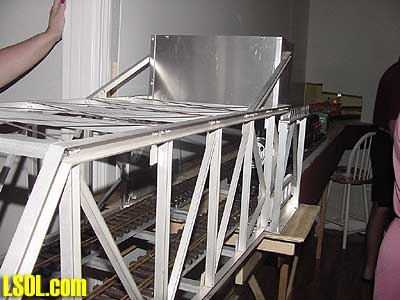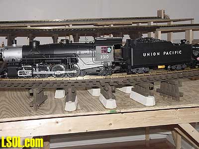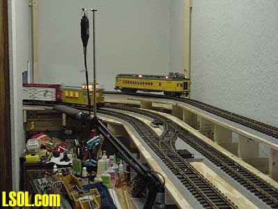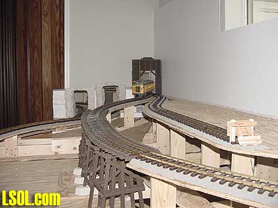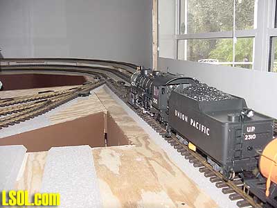 Harry models the Union Pacific railroad on an indoor layout that fits very nicely into one of the former bedrooms in Harry and Nancy's home. Harry had completed the bench work and laid the LGB track and LGB wide switches. The bench work is plywood and Harry uses vinyl roadbed for the base. His railroad is a double track main with a yard and an engine servicing area.