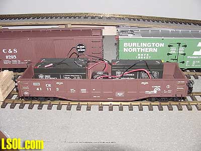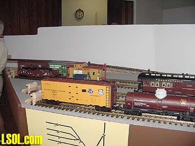 He has a gondola set up with battery power, but was not using it at the meet. His motive power consists of a LGB Mikado, a USA Trains 20 ton switcher and an ARISTOCRAFT Doodlebug.