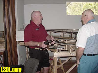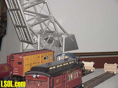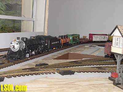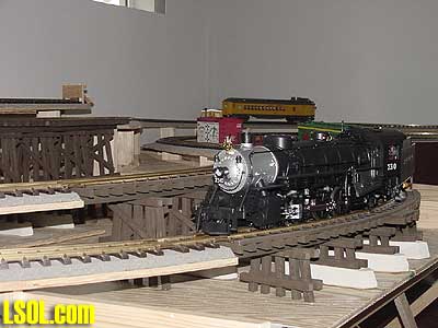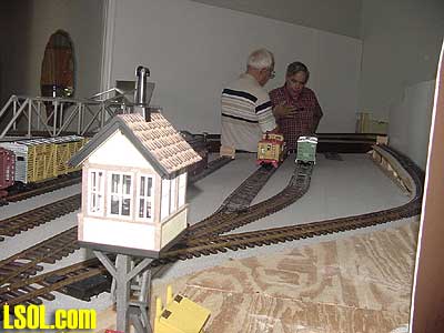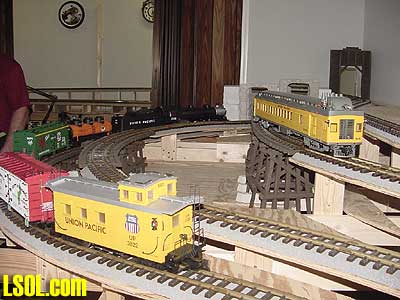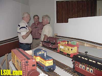 He plans to run the boat on the small lake in front of his house at some point in the future. Nancy once had her decorations in the space where the boat is now prominently displayed, but kindly relinquished the case to Harry's model. Harry's interest in railroading started as a small child and after many years modeling in "N", saw a Bachmann set in a store and the rest is history. He sold his "N" trains at a railroad meet and used the money to pay Rail Dreams to design his indoor railroad, which he modified to improve the design. He is an LSOL member, so you can read more about him on the member's profile pages. Our day went quickly with the first part of the gathering spent watching trains.