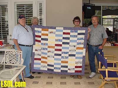 At the end of the business meeting, Frank passed out LSOL calendars and $5 discounts for memberships in LSOL. "It's a good deal!" someone shouted. During the early part of the day's events, Elaine & Wayne Haggenbottom displayed a beautiful quilt they had quilted for the past president, Cliff Tavernier that displays thank you notes and signatures of many of the clubs members.