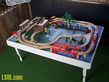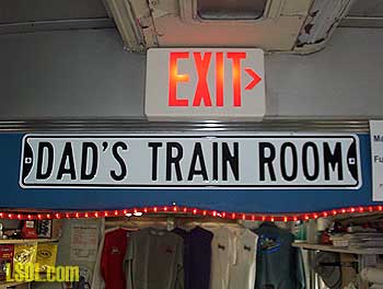 Switches at the windows allow trains and lights to be turned on activating a timer even during off hours. We have a "Brio" type layout for the little hands to enjoy along with restored seats from Tolleys for the adults to relax. There is an archive of Magazines and other books on Trains; model railroading and related subjects available reading along with an area dedicated to handouts, newsletters, brochures and other free information.
