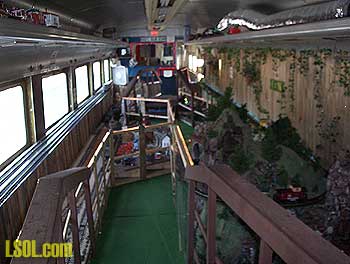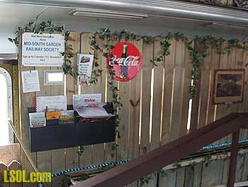 The display is manned by volunteers (operating engineers must be members and have trained on the operation of the coach layout) and is headed by the Chief Operating Engineer (also a volunteer) who has total responsibility for the display and its operation. All the donations from visitors to the club room goes toward display improvements. We try to maintain a supply of free gifts for our young visitors. Just like our own layouts at home, this one, even though it is in a real train coach, is a living and growing project. It lives because of the love of the hobby by our members and the look in the eyes of the children of all ages that pass though or peer though the windows. That is what we do and love. Come and visit, everyone is always welcome at the Mid-South Garden Railway Society's Large Scale Layout. Top of Page