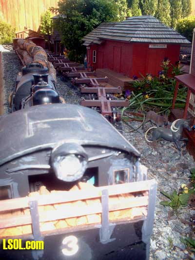 The Vancouver Island Garden Railroad Club exists to encourage one another in a shared interest, to help one another with new ideas, to enjoy the diversity of every train layout, to make lasting friendships, and to clear the goody table by the end of each and every gathering. http://www.vigardenrailway.com The club members live all over Vancouver Island with the farthest members being a 3 hour drive apart ( Note this is about half way up the island) , so to see most of the members out for the Spring Operating Session at the Lone Firr RR was great, as many members made the 3 hour drive to become engineers for the day. The Lone Firr RR is modelled on Vancouver Island in 1910 and represents the towns of Duncan, Chemainus, Ladysmith and Nanaimo on the mainline Esquimalt and Nanaimo Railway (E&N) right of way. Esquimalt is in the train storage shed and is reached on a spur that runs out of Duncan.. The Victoria Lumber and Manufacturing Co Railway (VL&MCo) has it headquarters in Chemainus . The VL&MCo operates from a logging spur that follows the Chemainus River with a ruling 3.5% grade from the tall timber onto the E&N Mainline and ends in Ladysmith at the log dump. The VL&MCo also uses the E&N Mainline to haul logs from Lake Cowichan via Chemainus to the Ladysmith log dump. The layout was designed for Operations and follows a dog bone plan. The mainline is about 250? long with passing sidings at Chemainus, Ladysmith and Nanaimo with the remainder being single track. There are reversing loops at Duncan and Nanaimo that exit the yard through the fence into a holding track and then return through tunnels at a different point representing a different departure location. Also there is a mainline diamond crossing just before the Chemainus River Bridge.