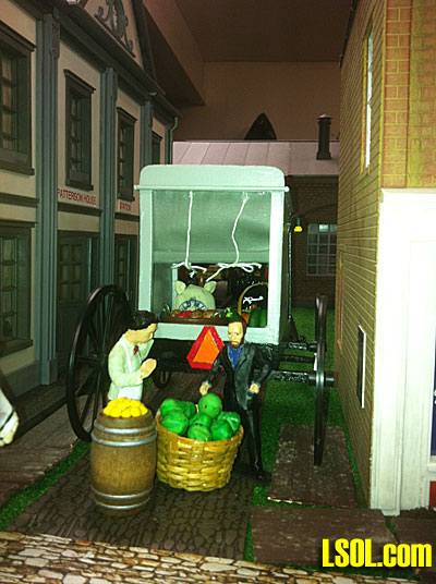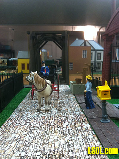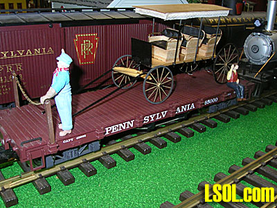 As all model railroaders know, one's layout is never finished. I've been working at this hobby for 10 years now. Having a fetish for minute detail, I still have many hours of enjoyment ahead; especially scratch building all sorts of buggies and harnesses for horses from old photos. Then there's the continuing need to acquire and paint figures in turn of the century garb. And I'm still looking for a picture of a period "market car" to build for my Great grandfather.