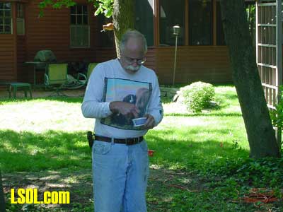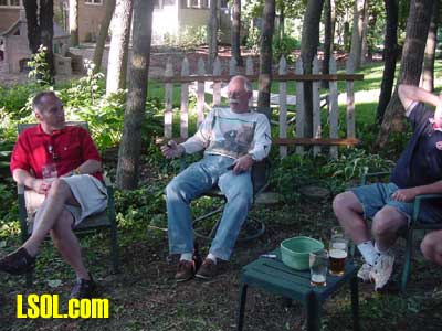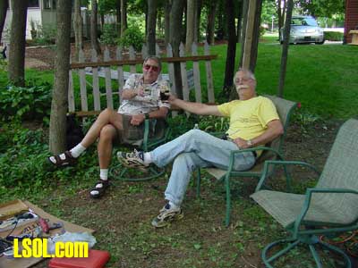 During the time we had been constructing the railroad, several of David's neighbors had stopped over to see what we were doing. Once the train began running, they returned to see it and commented on how much fun a working railroad was. One friend sat down with us, and he and David toasted the new railroad.