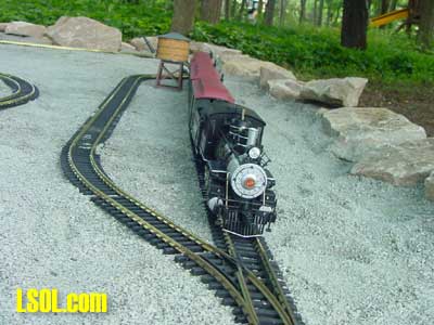 Although it took several weeks to acquire the engines, cars, track, power and switches and a couple of months to plan out the railroad, the actual building of this railroad took less than a week to complete. It is a very simple railroad but has already given David several months of pleasure. He plans to build some buildings and to add a caboose and some cattle cars, so he can ship his steers to market. Before too long he will be calling to talk about additional locos and cars, how to extend the track and when to add some plants. Frequently we hear from people at Large Scale events and on LSOL.com that they have the trains and track but just haven't had the time to actually build their railroad. I hope this article shows that a railroad can be constructed in a very short period of time. Even with a simple track plan, the owner can have a place to see his or her trains running and giving many days, weeks and months of pleasure. Even if the railroad never progresses beyond the size and complexity of David's railroad, it will provide much satisfaction to the builder. It is easy to put off getting started, but it is possible to put a railroad in your yard or garden with only a week of time invested. Hopefully, those of you who have been holding your horses will get out in the yard or garden and put down some track to start running your trains like this cowboy hero did.