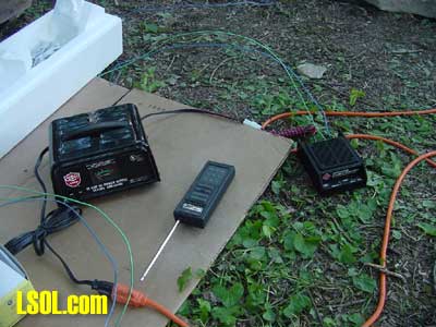We decided to connect the power pack and Train Engineer in a temporary fashion so David could later construct a portable cart to transport the engines and cars from his garage to the railroad.