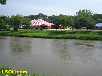 These are part of a complete circus display including a scratch built 1" scale steam locomotive. As Tom left the circus, he shot the grounds from across the Baraboo River.
