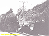 A Mikado engine at Kennecott | The line also had eight open-ended 55 foot coaches and about 250 freight cars. The ore was carried on 107 steel flat cars in burlap bags that contained processed copper ore. Maintenance equipment included four massive rotary snow plows to handle the enormous snow drifts which were common in the first 100 miles of the line. |