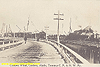 A section of the Copper River steel bridge crossing | I had left room along the outdoor rail line for the building of the town of McCarthy. This year my help and I constructed catwalks to access the outdoor track which is about 10 feet above the ground. We then placed roofing over much of the track to protect the structures we were about to build. Toward the end of the summer we began building historic downtown McCarthy. This included some very large structures that no longer exist. We completed the downtown area and the railroad yard in about two months. |