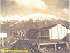 Kennecott--Bonanza Ridge in background | The 196-mile line followed the Copper River a distance of 131 railroad miles to Chitina. This was to be the mainline which would continue on up the Copper River, ultimately crossing the Alaska Range and terminating at Chena Landing near what became Fairbanks. |