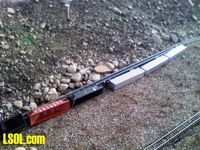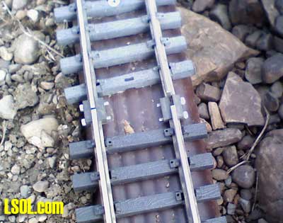 | After seeing your track gap I'm glad I use the SS track and fiddle with those darn tiny screws. I've never had that problem! My gandy dancers are always moving rocks, I only pay them peanuts and they think the roadbed is a great place to bury them! It's no big deal tho' I just pour on some more gravel and brush it out with an old paintbrush, lift the track over sags and push some ballast under and smooth out with that 3" brush... this is yearly though. John |