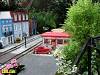 This year I went to Phipps Conservatory again to view their holiday garden railroad display. I was told by the staff at Phipps that they weren't sure if there was going to be a display this year. The old building is being renovated and new buildings are being constructed on the grounds.  In keeping with all the construction going on at Phipps their holiday display has a construction theme. The display is in the same room it was in last year, but half of the room is partitioned off due to the construction. So to keep the display about the same size and to keep the viewer's interest they put some of the display in the planting beds around the walls. I think this is more interesting and I personally hope that they continue to do their displays this way. In the largest planting bed, the one in the middle of the room is where the construction scene is located. There is also a coalmine; I am kind of partial to coalmines too. There were 2 trains running on different loops in the main scene, a USA Trains NW2 pulling a cut of tank cars, and a USA Trains 44 Tonner pulling 3 boxcars. The 44 Tonner stopped near the construction scene each time around for a few seconds, I guess it was using a station timer. No one was there this year to explain to me the workings of the railroad, but that's ok because last year I ended up having to explain the difference between scale and gauge to some bystanders that got caught up in the conversation. In the planting bed to the left is a city/rural scene with an LGB trolley making its run back and forth thru the scene. It was using a reverse timer, and by having the track loop back and cross over itself, the trolley started and stopped in the city part of the scene. I think that was really imaginative. In the planting bed on the right there was a logging scene, with a small sawmill. Running thru the scene was a USA Trains 20 Tonner hauling one logging car. This train ran on a single track with reverse loops at both ends. One reverse loop was in a tunnel, and the other was in a woodland scene. On top of the mountain with the tunnel was a lookout tower. A bear was walking across the rocks on the backdrop to this scene, unfortunately the sun was shining in the camera lens when I shot a picture of the bear, so the picture was a bright blurry mess. Someday I just might figure out how to use my camera. This year I was able to take my mom along, so now she has an idea of what I am doing to our backyard, time will tell if this was a good idea or not. She likes the little buildings and so far I have only made large ones. I am again looking forward to the holiday display at Phipps next year, and maybe I will take my mom to Phipps again, it was a nice outing for both of us. Top of Page