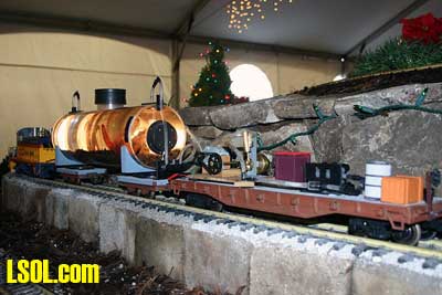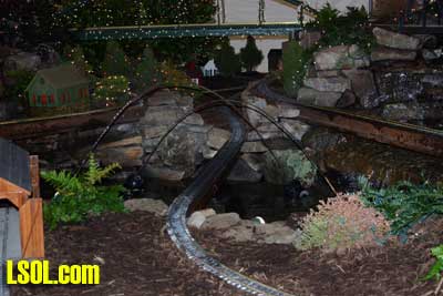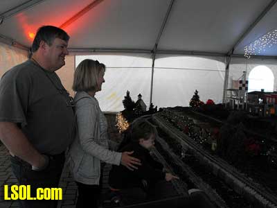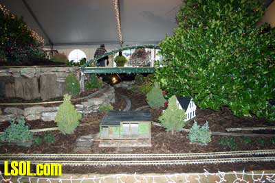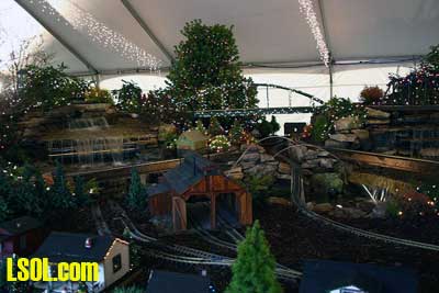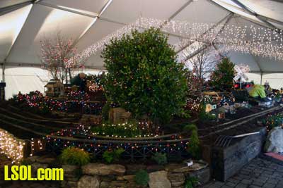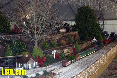 University of Tennessee Gardens Holiday Express 2009 It is all for the kids. That is kids from 1 to 93.    It is a labor of love. The love of watching the kids react to seeing large scale trains running in a holiday setting. The reactions range from squeals of excitement to silent stares of awe. Even the older kids (on the 93 end) are taken back by the extravaganza of over 1,500 feet of brass track; 12 different loops; aquarium cars with live fish; and thousands of holiday lights, and much more.          In a 4,000 square ft. tent on the campus of the University of Tennessee visitors are welcomed to a dream of a gentleman named Mark Fuhrman. Mark, owner of Mark Fuhrman Landscape Company and a large scale enthusiast for over 25 years, was finally able to make his dream come true in 2008 when the University of Tennessee agreed to allow him to set up the display in the University Gardens. The 2008 maiden run netted 9,046 visitors over six weekends, and provided the University of Tennessee Gardens with a donation of over $2,000. U of T Gardens is a non-profit, free to the public botanical garden which survives on public donations. U of T Gardens Website