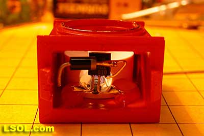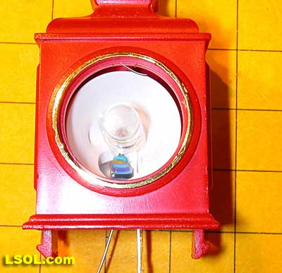 If there is little space for installation of the LED in a headlamp, such as in the photos of an external LGB headlight fixture below, you can put all of the parts but the LED inside of the engine and run wires for just the LED to the headlamp location.