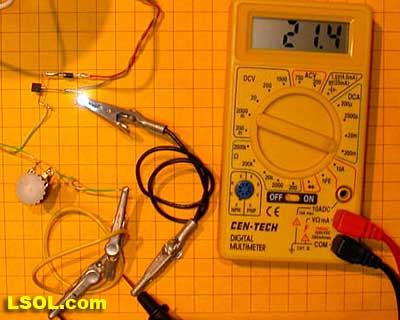 - Using either a 1000 ohm potentiometer or a number of 1000 ohm fixed resistors as above light the LED and take note of the current reading on the meter