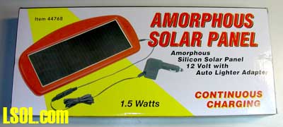 I have found two reasonably priced sources for solar panels. Harbor Freight (www.harborfreight.com) sells small solar panels that are designed to trickle charge a car's battery. The panels are about 6" x 15" and are attached to a cable that ends in a cigarette lighter plug. The idea is to place the panel on a car's dashboard and plug the other end into the cigarette lighter socket. If there is sufficient sunlight it will help to keep the battery charged.