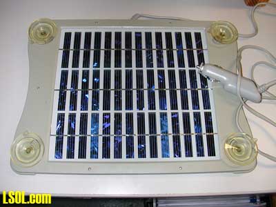 VW Panels from eBay My other source for solar panels is eBay. It seems that every Volkswagen that is shipped to the United States has a solar panel attached to the inside of its windshield with several suction cups. It also uses a cigarette plug to keep the battery charged. I am not sure how much sun gets into the holds of a freighter, maybe they are depending on the time that the cars sit in parking lots before and after their ocean voyage. Just search eBay for "VW solar" and you should find a number of these units. They typically sell for about $15.00 each.