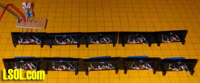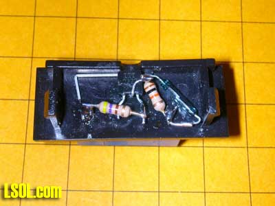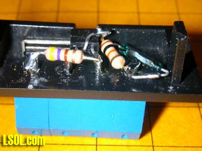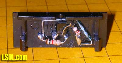 | Todd - this is definitely a low current project - the reed switch couldn't handle an engine for long and the transistor is only rated at 1/2 amp or so. You could beef it up with a Darlington transistor and larger reed switch but then it wouldn't fit! The transistor is small enough and stays out of the way of the moving parts of the switch mechanism - Noel reports that all 10 are working well! dave |