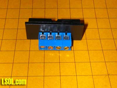 - 4 terminal block connector (All Electronics part # TER-503) - note that this is a 3 terminal block. I cut one in half giving me two single terminal connectors. I snapped one to the 3 terminal connector giving 4 terminals