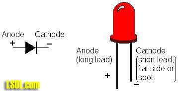 What I decided to do for the ditch lights was to wire two LEDs in parallel, one in the orientation pictured above and one backwards. With this setup if the battery is connected with its positive terminal to the left LED1 lights. When the battery is connected the other way LED2 lights.