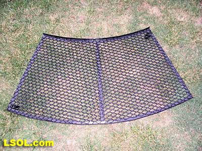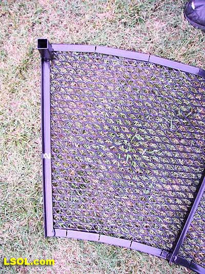 The bench work is made out of one inch angle and expanded metal with some square tubing for legs and leg sockets. Relief cuts were made in the angle so they could bend it to form the curves. Four inch sections of square tubing were welded to the bottom side of the bench work, this gives the smaller diameter square tubing legs a place to slide in to.
