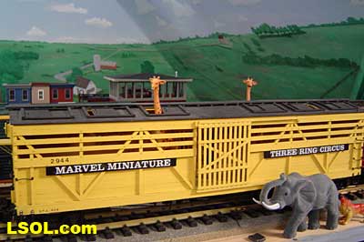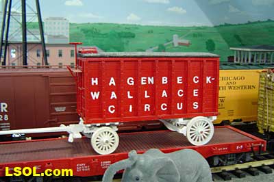 I could only find these from a discount mail-order company. Because I was putting together a circus train for Ann, I was always looking for circus equipment at the train shows I attend.