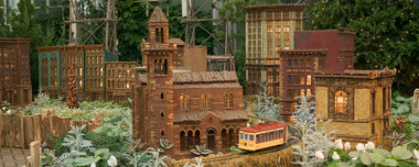 Grand Rapids, MI - The annual exhibit is in its 18th year, (November 20, 2012 - January 6, 2013) and this year the exhibits main focus will be on the railway garden. Always a favorite among visitors, the train will once again weave its way through the indoor garden spaces, passing by storybook scenes and handcrafted Grand Rapids landmarks. This year, however, regular attendees will notice a fun addition: the Meyer May House, Voigt House, Paddock Place (now Mangiamo!), Jersey Junction and Fifth Third Ballpark now sit alongside the train's path. The new landmarks were added in response to a guest vote taken several years ago that asked which iconic buildings visitors would most like to see added. Link to Frederik Meijer Gardens & Sculpture Park website |