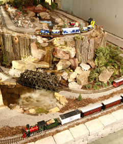 Make special family memories with the "Enchanted Railroad" the model train display that's an annual holiday season favorite. See trains of different colors and styles loop around a holiday-themed track. |