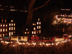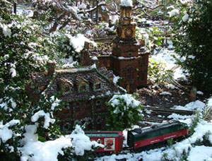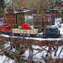 Bustling G-scale model trains, all set in the lovely winter garden of the Arboretum. The display and buildings are all made of natural materials