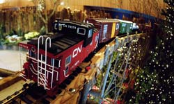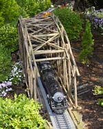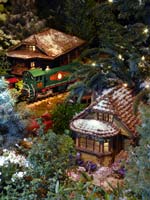 | New landmarks for 2009 include the Chicago Union Stockyards' Old Stone Gate. Paul Busse, designer of the Model Railroad Garden, created this amazing exhibition exclusively for the Garden's holiday celebration.