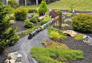 Stegmiller says he used to have a train garden in his basement, but he never had time to play with it. Now he can play with his trains while he's outside mowing the grass and working in the yard.