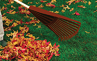The proper use of lawn and garden tools is also important to avoid strain. When using long-handle tools, such as a rake or shovel, try to keep your back straight. Grip your tools lightly when working to avoid injury. Joe Sherinski, host of Garden Power, also recommends that all your tools have comfortable grips. Fortunately, there are garden tools that aid in lawn and gardening work that's easier and safer. Many tools are now made with fiberglass, instead of wood, which cuts down on the weight of the tool, keeping exertion to a minimum. The International Chiropractors Association (ICA) recommends using long-handle tools to give better leverage and avoid having to stoop and twist with your back while performing tasks such as raking or digging. They also advise avoiding continually bending over while you're standing. Instead, use a garden stool, or kneel, and keep your back protected by rising via straightening the legs and knees, not lifting your upper body from the waist. It is also advantageous to rotate tasks to avoid staying in one position too long. | Clog Free Rake, eliminates the frustration and iconvenience of stuck leaves at the end of the rake. A patented, wave-shaped tooth design keeps leaves from sticking. Lightweight, yet durable, with special comfort-grip handle. Average retail: $9.99. | The Canadian Physiotherapy Association suggests selecting a tool by matching the size of the tool handle to the size of your hand and using a loose, comfortable grip. An extended handle is also ideal for many tasks to reduce overreaching. Have the right tools for the job and find your "easy zone," which is a comfortable position to work in and use tools to assist you as you move with your work. One of the most common gardening tasks that often results in injury is shoveling. To avoid injury, the lawn care experts at Ames True Temper recommend the following shoveling tips. First, make sure the shovel's head is perpendicular to the ground when you are pushing in with your foot. If you cannot push with one foot, don't attempt jumping onto the shovel with both feet to drive the tip in; if the ground is this hard, you'll need a backhoe or pry bar for the job. Second, when lifting dirt out of the hole, don't grip close to the bottom of the shovel or too far at the end of the handle, because this causes strain on your back. Grip in the middle and continue the upward motion of lifting the dirt to throw it into a wheelbarrow or onto a tarp. | Ames FreshCut pruner is an innovative style of new pruner, which utilizes a new "patent pending" replaceable blade concept. The unique replaceable blade feature allows the pruner to remain sharp to insure clean cuts to plants. The blade requires less cutting force allowing for easier operation. This FreshCut pruner uses a standard utility knife blade that can be stored inside the pruner handle. | Third, should you encounter roots while digging, don't attempt to use your shovel as a pry bar. Instead, use the tip of the shovel as a chopping tool and cut cleanly through the root by turning the shovel around. And as with any other gardening task, always keep your back straight while shoveling. The final gardening tip is to wear the proper attire. Always wear gloves and kneepads to keep warmer, dryer and more comfortable. Wearing an apron with large pockets is also helpful to keep commonly used tools at hand, which avoids constant rising and squatting, as well as continual trips to the garage or shed. | Ames Earth Toolsare a mid-size, lightweight tool offering designed with women, casual gardeners and the elderly in mind. Each tool features a 48" stained, certified wood handle and soft grip for ease of use. Blades are coated providing a superior rust-resistant finish. Each tool also has a convenient hang-up hole for easy storage. | Top of Page