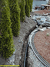 Second we got some drain pipe and created an overflow area on the pond that would draw water away from the pond and out of the garden railway. |