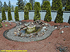 Click for larger picture | We had looked at adding some type of water feature to the pond. We found a great bargain on a fiberglass basalt-like rock that included a pump and filter. The price was so right we could not pass it up. We were able to just place the rock in the pond. We were very careful to make sure not to tear the liner when we placed it in. |