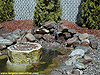 Click for larger picture | Here is our completed pond. As you can see, algae has started to grow on our center rock, giving it a much more natural look. We have also created a miniature water fall. It was easier than I thought. |